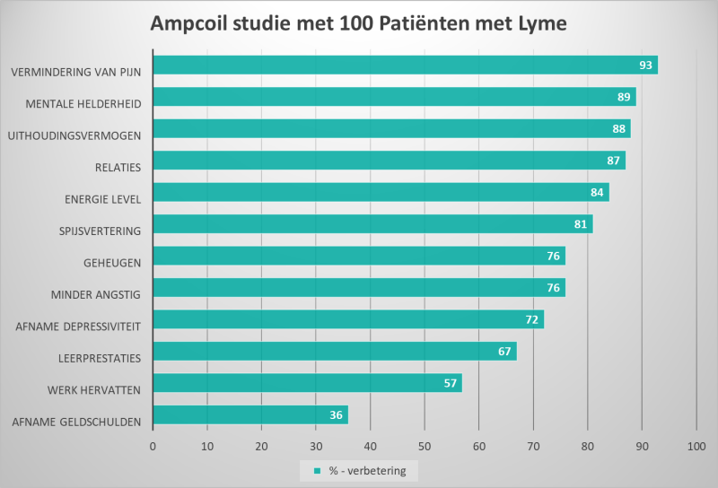 Een studie met honderd mensen met de ziekte van Lyme liet duidelijke verbeteringen zien in de meest genoemde klachten. In gesprekken met deelnemers hoorde ik vaak: ik heb mijn leven terug.
